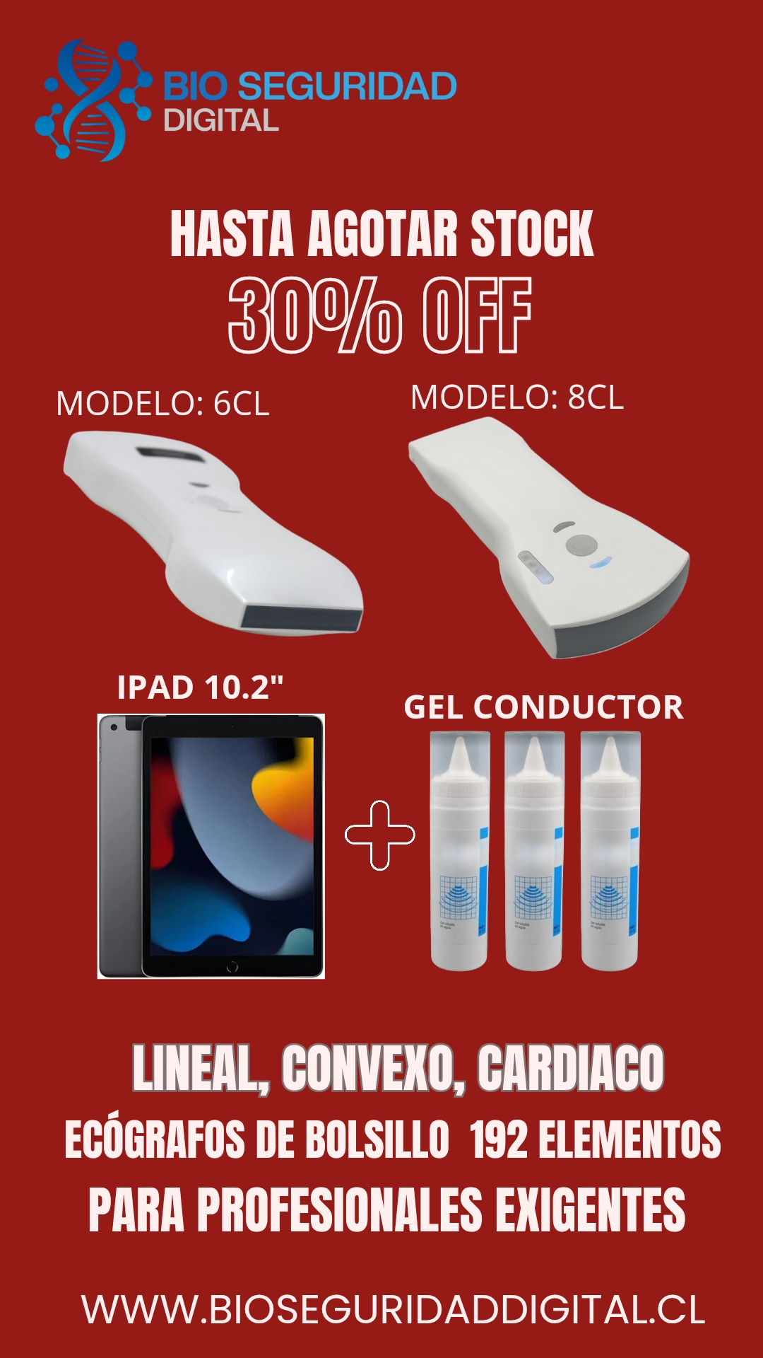 Un solo equipo. Dos sondas (lineal + convexo). 192 elementos. Todo en la palma de tu mano.