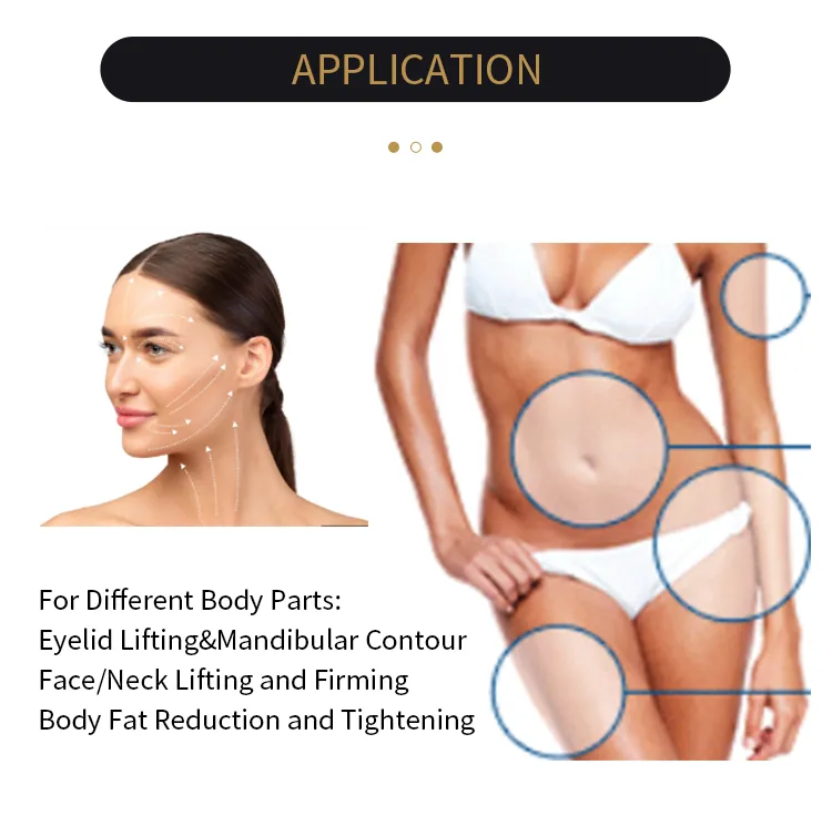 Versatilidad: Adecuado tanto para áreas faciales (p. ej., párpados, mandíbula) como para contorno corporal (p. ej., abdomen, muslos).