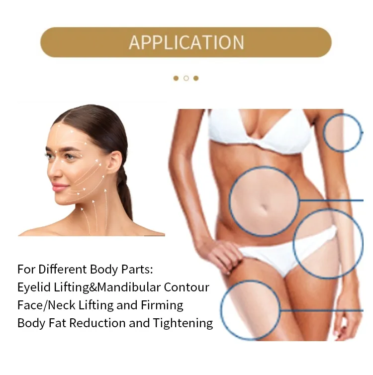 Versatilidad: Adecuado tanto para áreas faciales (p. ej., párpados, mandíbula) como para el contorno corporal (p. ej., abdomen, muslos).