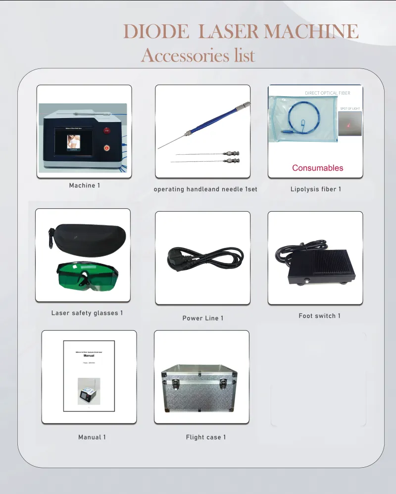 Diseñado con fibra óptica de grado médico, el dispositivo garantiza un suministro preciso de energía directamente al tejido adiposo objetivo. El diseño de emisión lateral de la fibra distribuye la energía láser de manera uniforme en el área de tratamiento, lo que minimiza el daño térmico a las estructuras circundantes. Insertado a través de micropunción, este enfoque mínimamente invasivo reduce el tiempo de inactividad y mejora la seguridad en comparación con los métodos quirúrgicos tradicionales.
