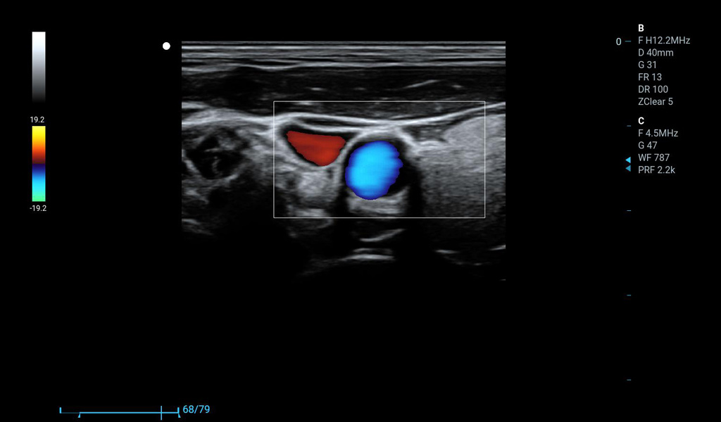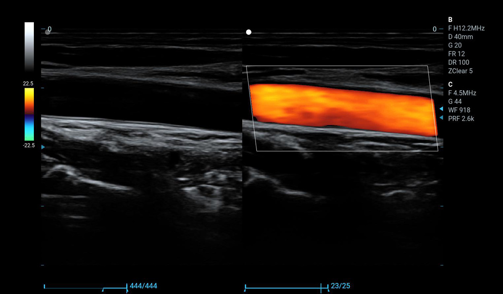 - IMT automático: Mide automáticamente el grosor íntima-media carotídeo (IMT), facilitando evaluaciones cardiovasculares más precisas y reduciendo el error humano.
