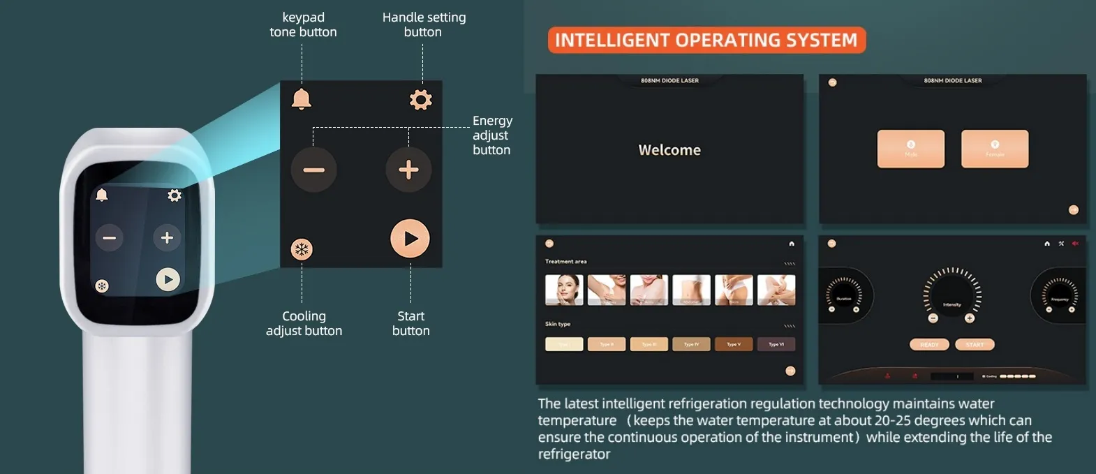 La interfaz intuitiva permite ajustar parámetros según la zona y tipo de paciente, mientras su potente sistema de enfriamiento mejora el rendimiento continuo durante jornadas extensas. Gracias a su eficacia, velocidad y seguridad, esta máquina es una solución de vanguardia para quienes buscan elevar la calidad de sus servicios de depilación permanente.