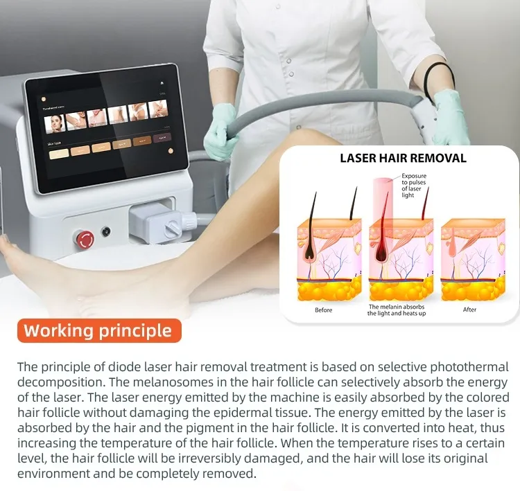 En general, la depilación láser combina tecnología óptica avanzada y principios biológicos no solo para destruir eficazmente los folículos pilosos, sino también para brindar una experiencia de tratamiento segura y cómoda, lo que la convierte en la opción preferida en la tecnología moderna de depilación.