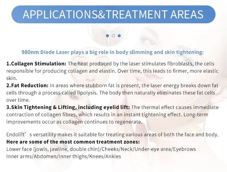 Versatilidad: Adecuado tanto para áreas faciales (p. ej., párpados, mandíbula) como para el contorno corporal (p. ej., abdomen, muslos).