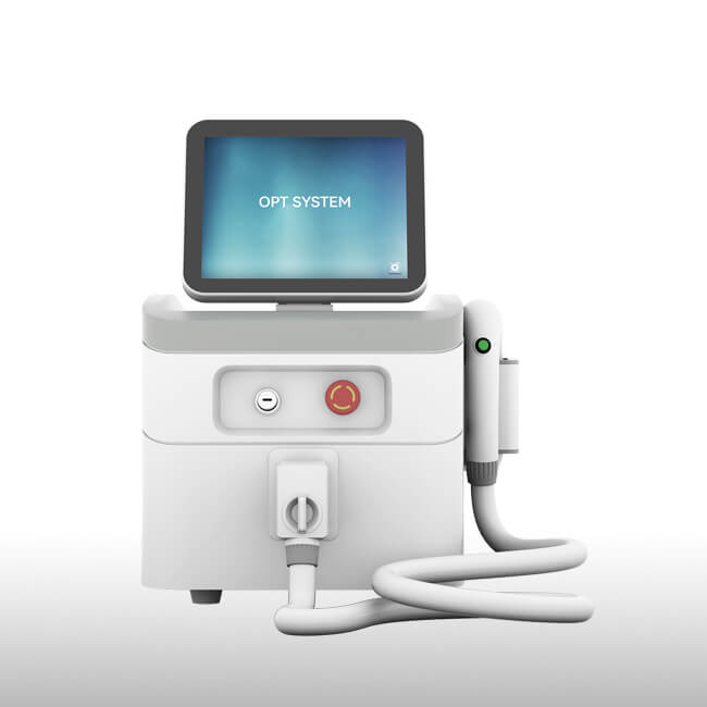 Máquina láser IPL portátil: emite luz pulsada intensa de amplio espectro y múltiples longitudes de onda que penetran desde la epidermis hasta la dermis. Mediante absorción selectiva, la luz es absorbida por la melanina de los folículos pilosos y, por efecto fototérmico, destruye el tejido folicular para eliminar el vello no deseado sin dañar el tejido circundante.