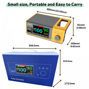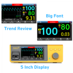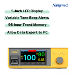 6. Pantalla y alertas: pantalla LCD a color de 5 pulgadas para una fácil visualización; alertas sonoras de tono variable para que los médicos controlen los cambios de SpO2; Botón de silencio con temporizador de cuenta regresiva para facilitar su uso.